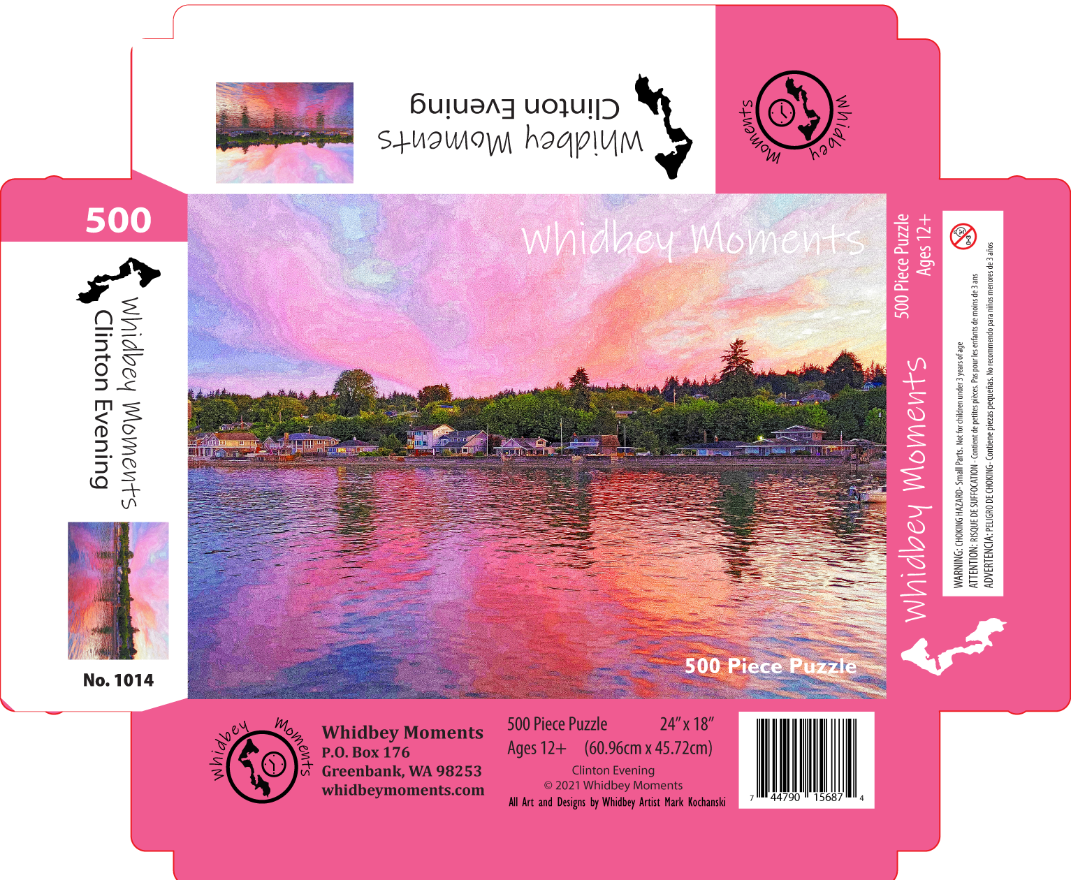 A 500-piece puzzle of a beautiful Whidbey Island sunset on Columbia Beach near Clinton captured while riding the on Mukilteo/Clinton ferry.