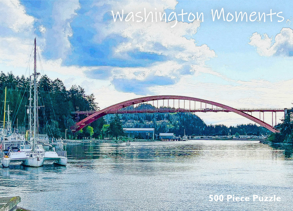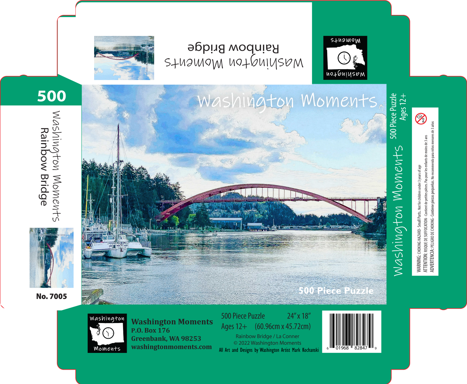 A 500-piece puzzle of Rainbow Bridge that connects Fidalgo Island and La Conner crossing the Swinomish Channel.