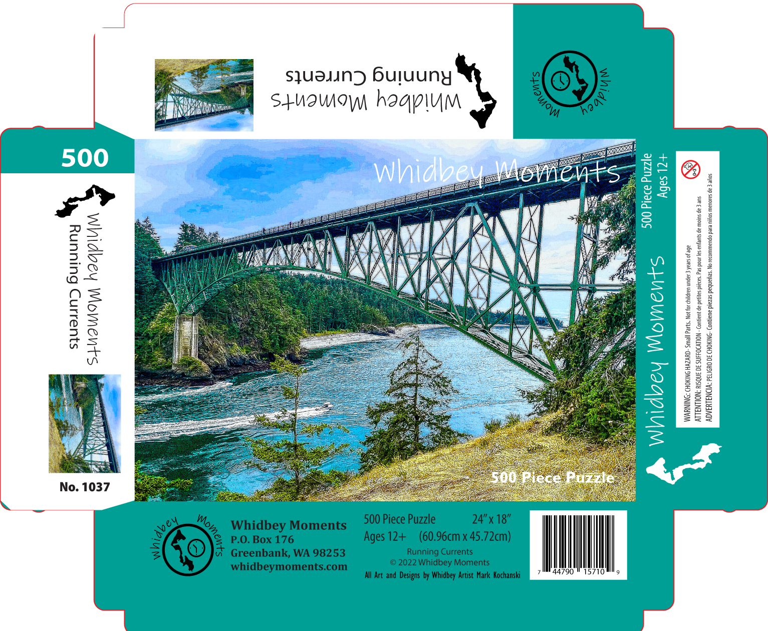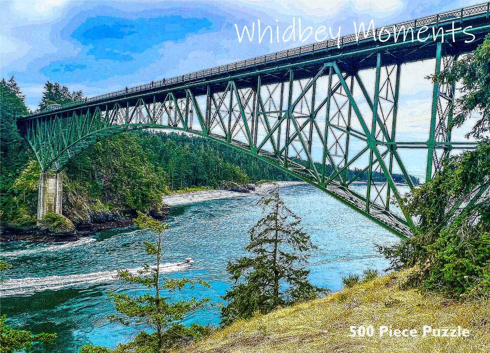 A 500-piece puzzle of the iconic Deception Pass Bridge as seen from Pass Island. Deception Pass is well known for its strong tidal currents and eddies that making navigating these straits challenging for all boaters.