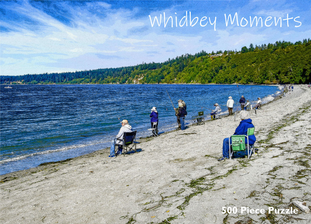 A 500-piece puzzle of the salmon fishermen at Bush Point beach— one of the most popular fishing spots due the closeness of tidal currents hitting the shore bring with them salmon migrating to back to source streams to spawn.