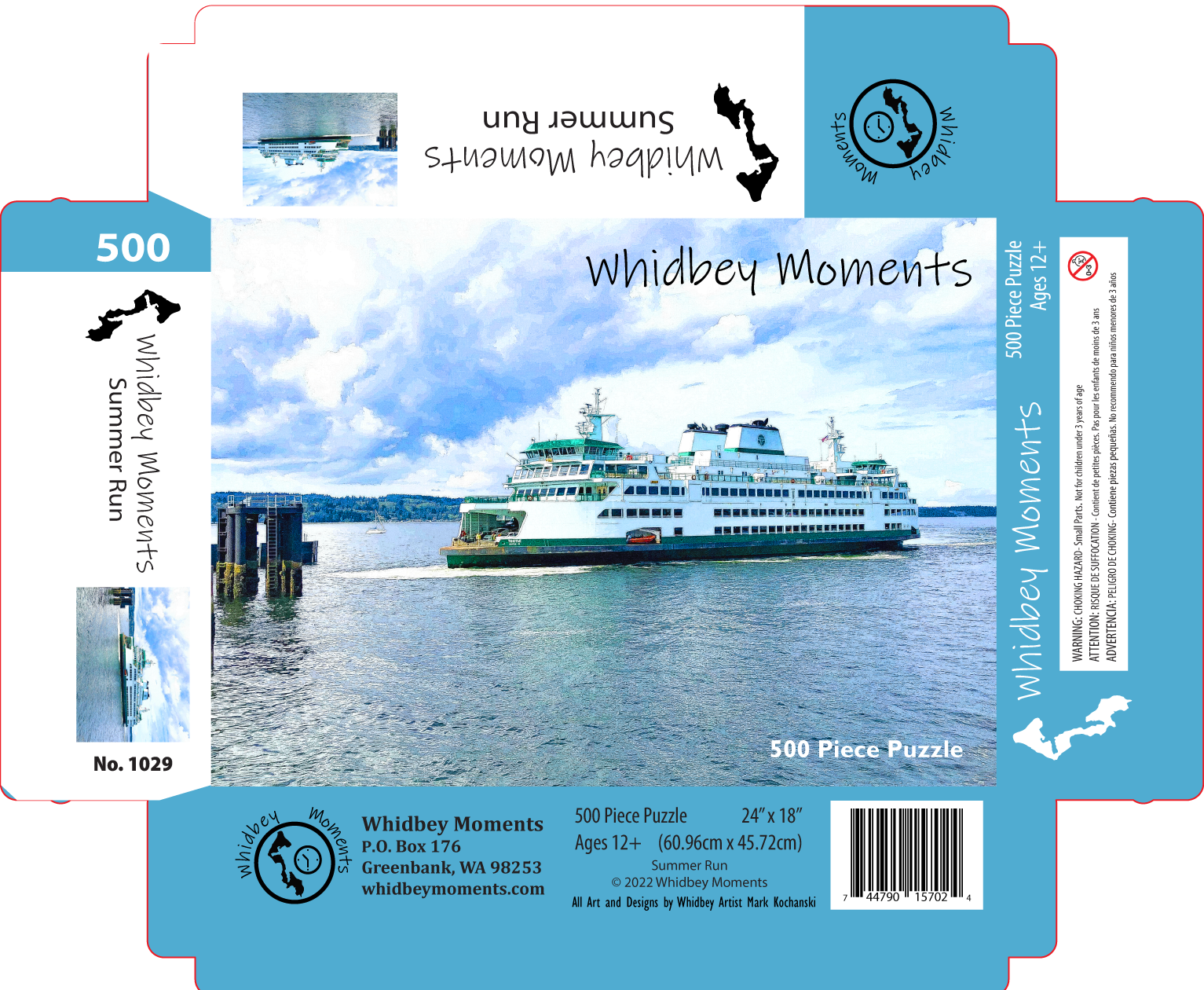 A 500-piece puzzle of the Washington State Ferry Olympic-class MV Tokitae the primarily serves the Mukilteo/Clinton ferry run. During the height of summer and holiday ferry waits can be 2-3 hours for 30 minute crossing.