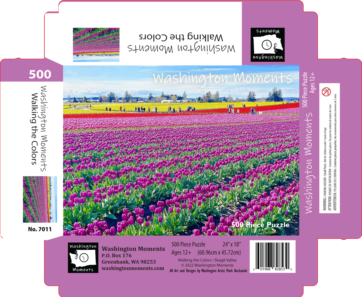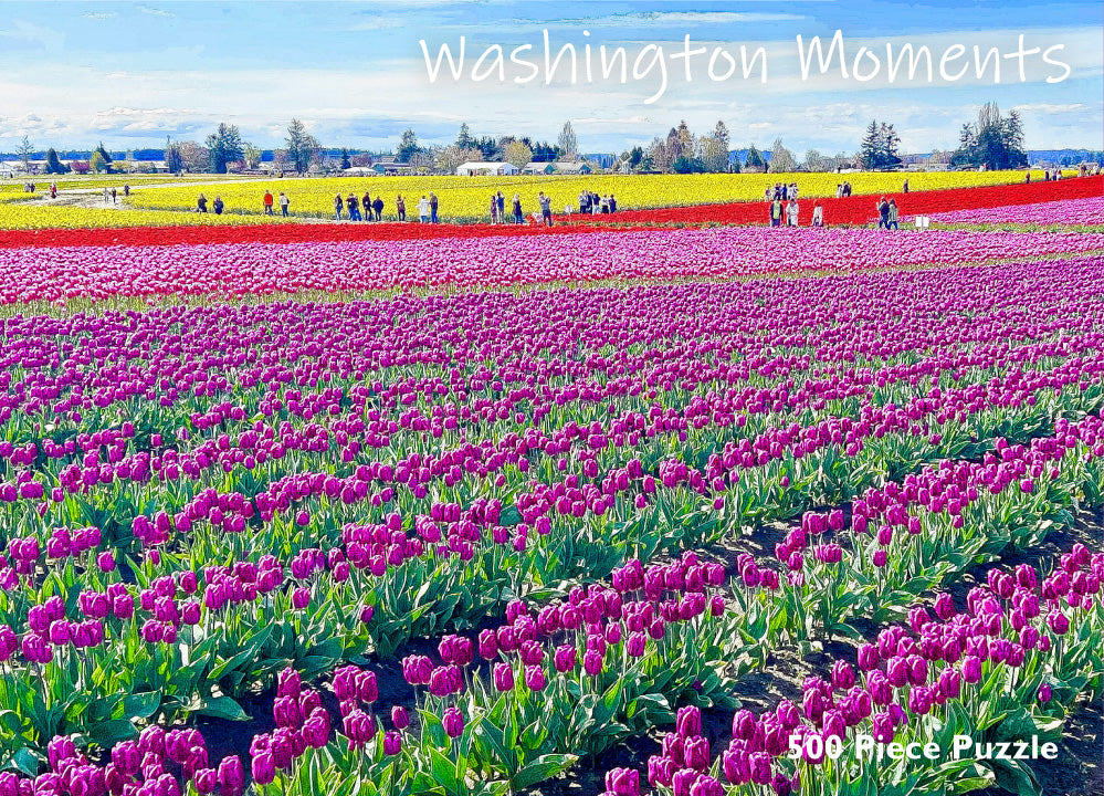 A 500-piece puzzle of Washington’s largest tulip fields in Skagit Valley that bloom during the month of April. A popular destination to walk and take pictures by all.